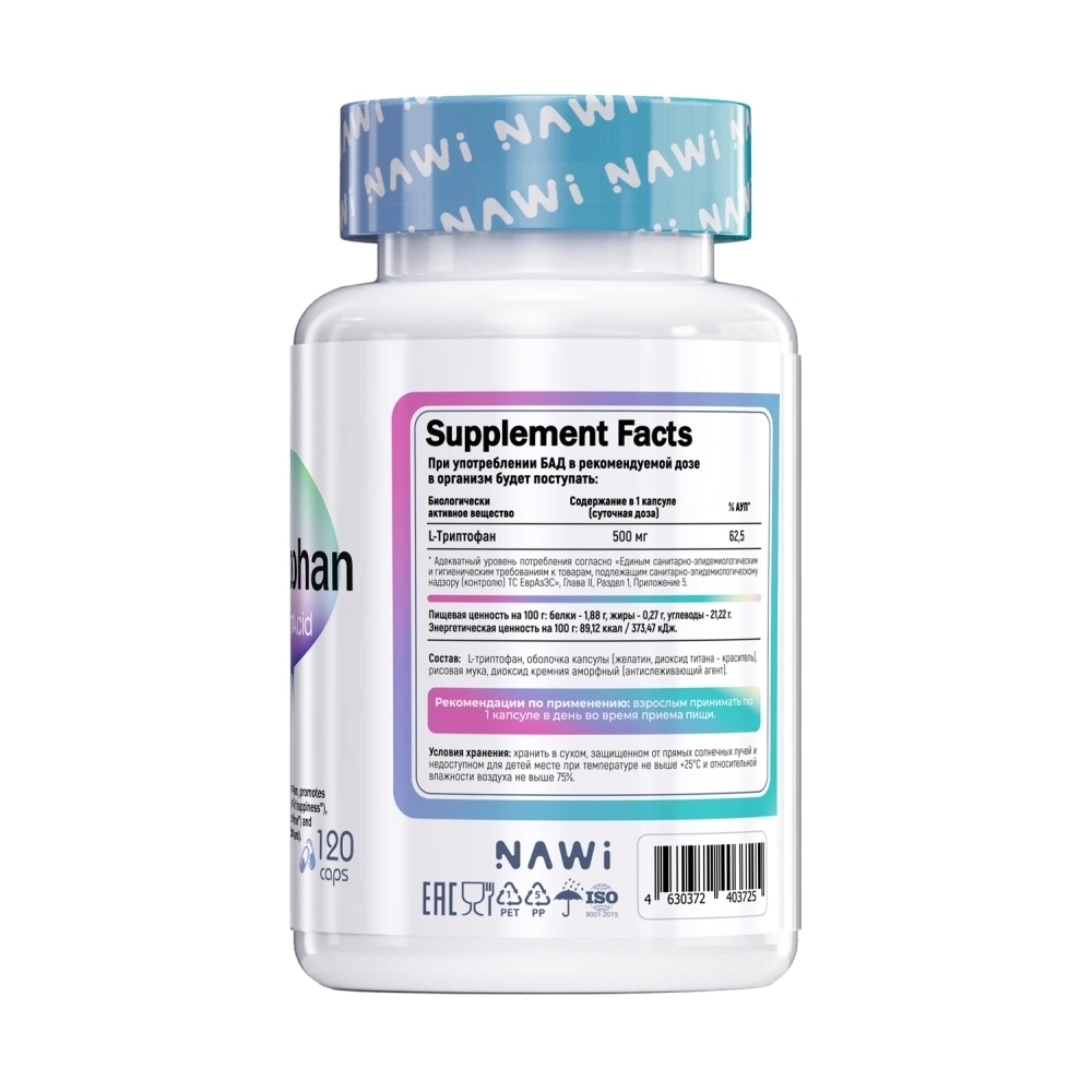 Аминокислота NAWI L-Tryptophan 500 мг 120 капсул