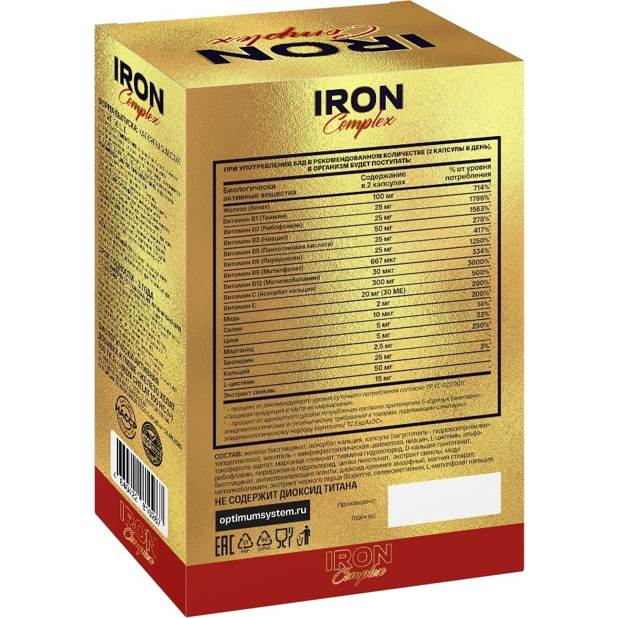 Витамины Optimum System Gold Series Iron Complex 60 капсул