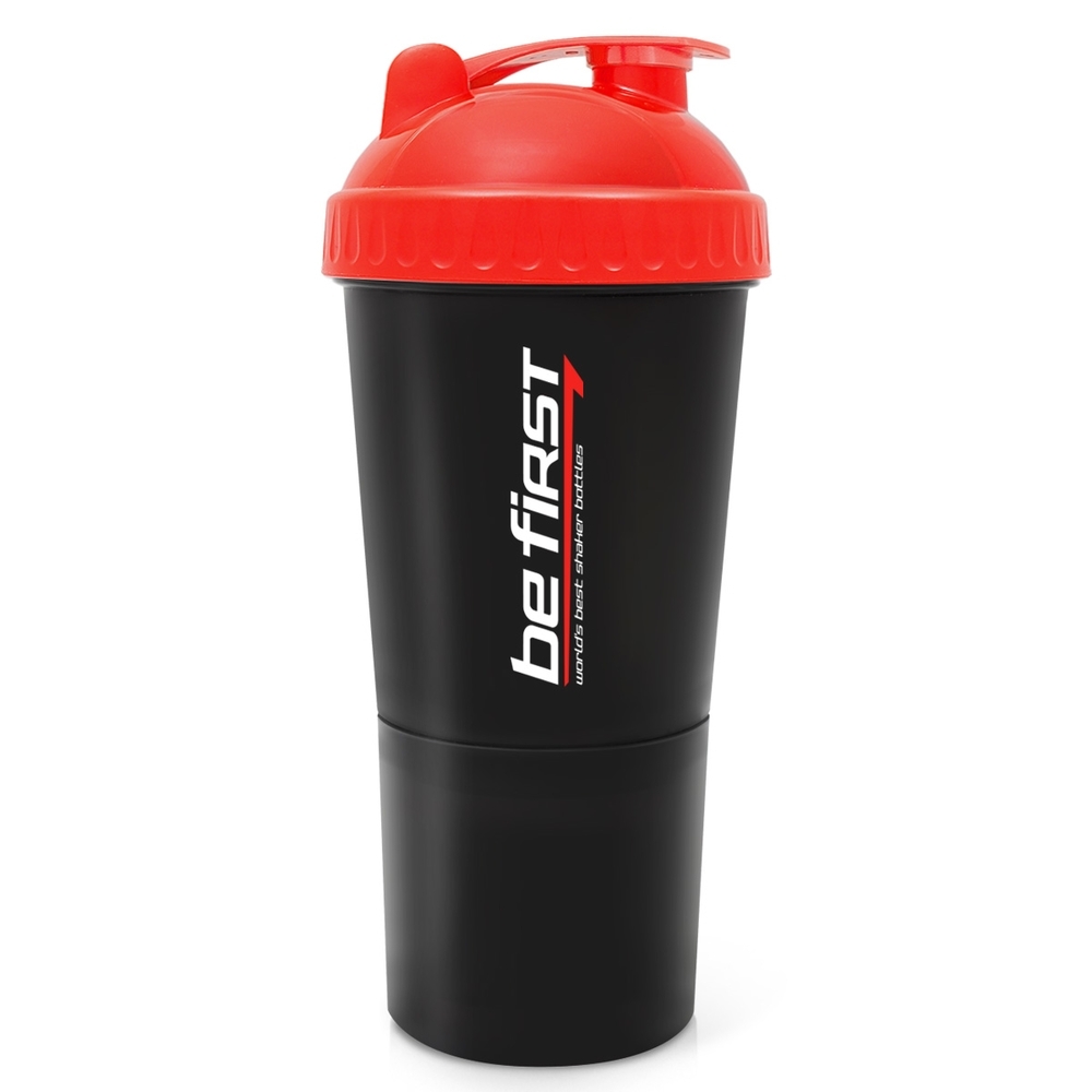 В отличие от шейкеров других производителей, в нашем шейкере есть дополнительный контейнер в контейнере. В прикручивающемся контейнере вы можете хранить дневную порцию гейнера или протеина, а второй контейнер использовать отдельно как кейс для таблеток или капсул.