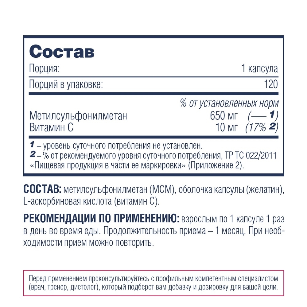 | Метилсульфонилметан: | 650 мг |