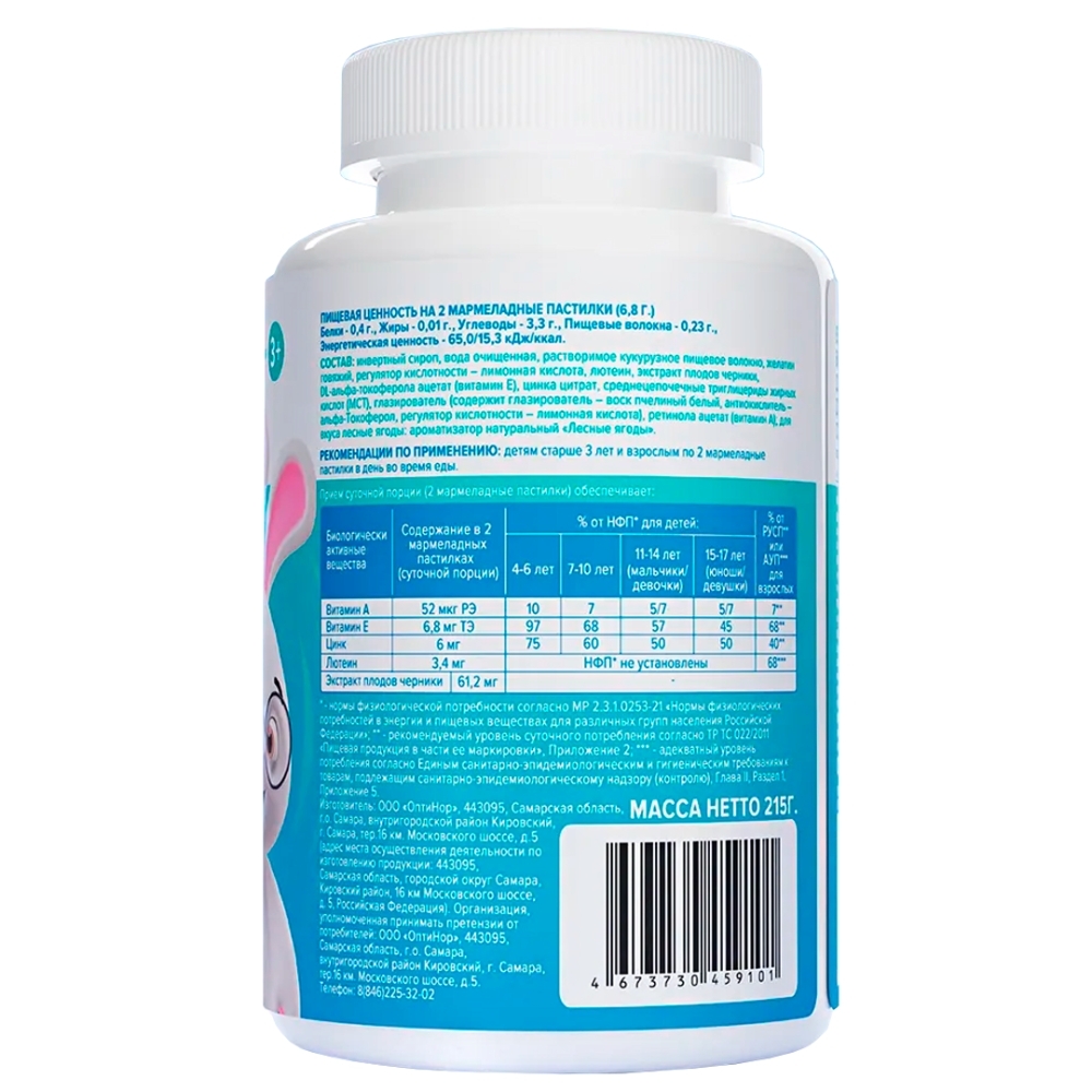 Рекомендации по применению: Детям старше 3 лет и взрослым по 2 мармеладные пастилки в день во время еды.