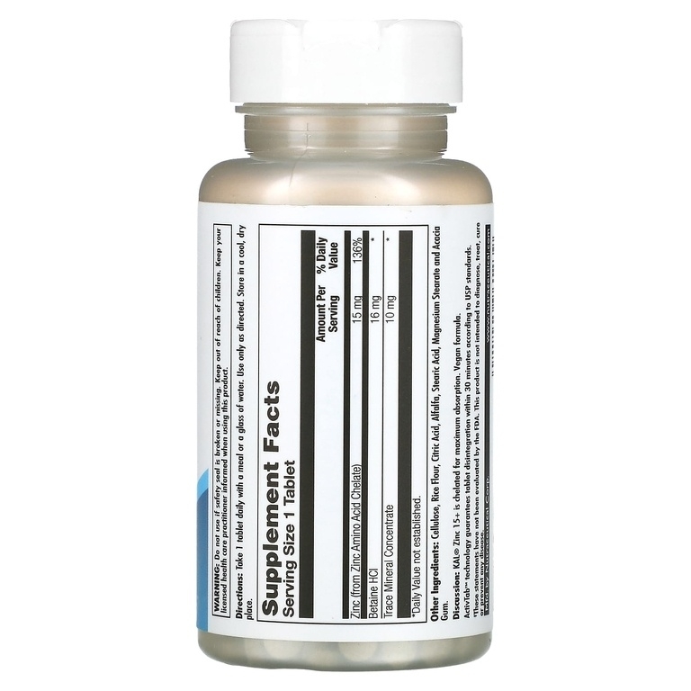 Цинк 15+ от KAL – это высококачественный хелатный комплекс, содержащий 15 мг цинка в каждой таблетке.